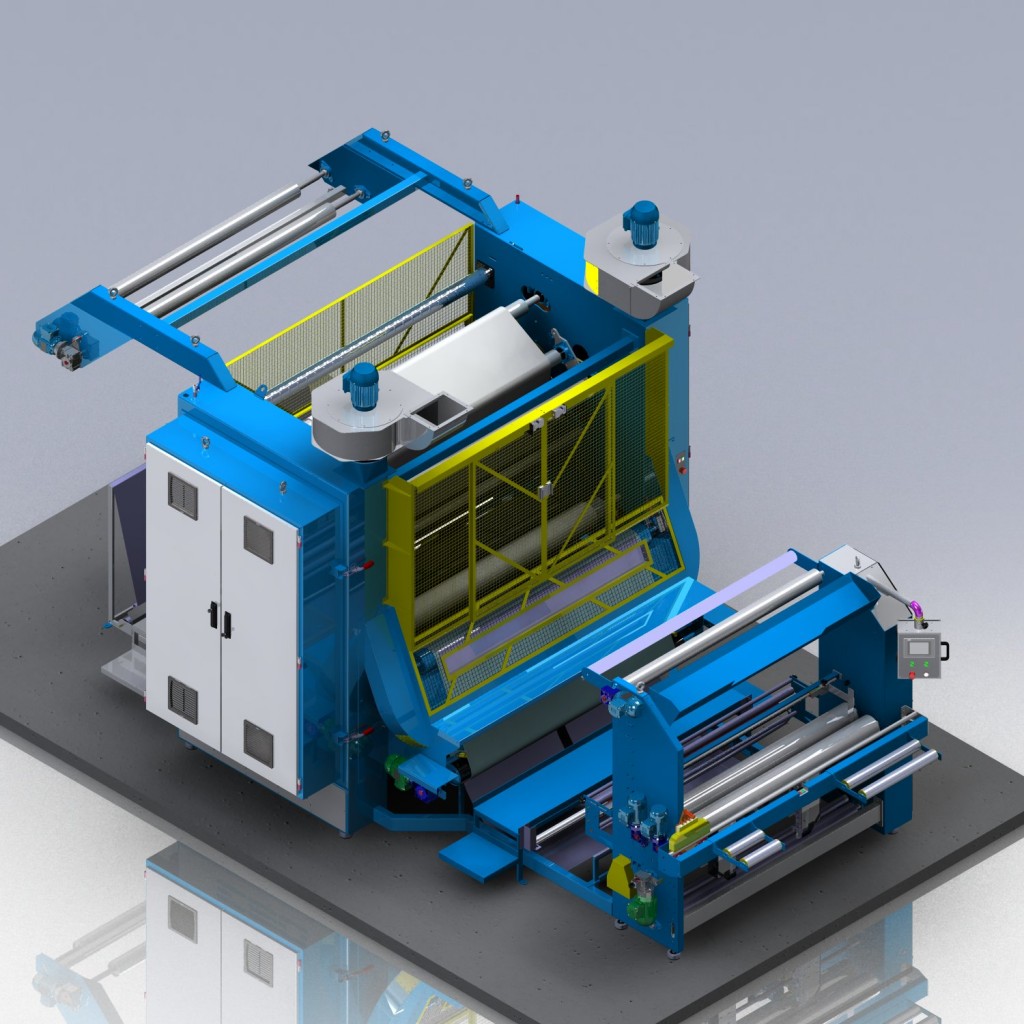 - Cilindros térmicos de elevado diâmetro (600 mm), aquecidos por óleo térmico e/ou resistências elétricas, permite atingir temperaturas de até 200°C. Ideal para malhas sintéticas.