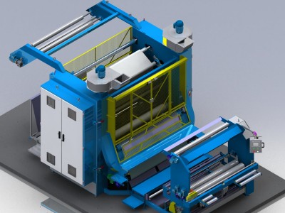 Bobinador non-stop com quadro alargador magnético e ajuste de largura a partir da IHM de comando.