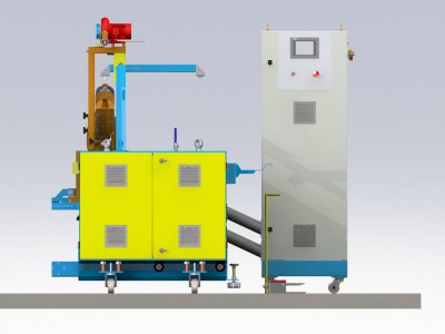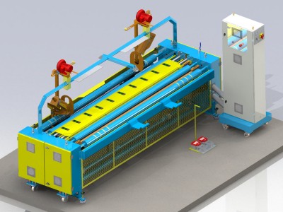 Sensor identifica o diâmetro do rolo de malha e libera automaticamente somente a quantidade de plástico necessário para a embalagem, corta o plástico, solda horizontal do plástico, solda nas duas laterais por sopradores de ar quente, fazendo o acabamento final da solda.