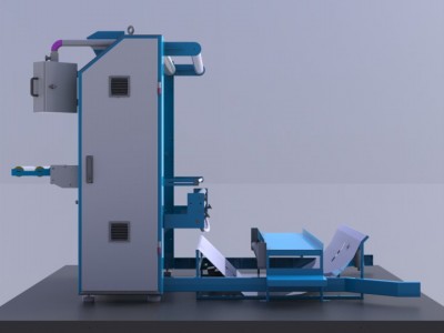 O bobinador Non-stop de rolo de malha pode ser fornecido para operar em conjunto nas saídas de calandras, ou separado com um rotor de umectação acoplado para aplicação de solução em malhas.